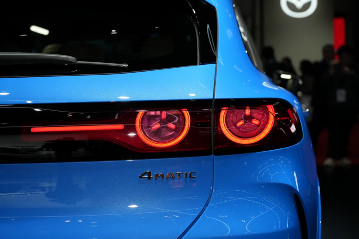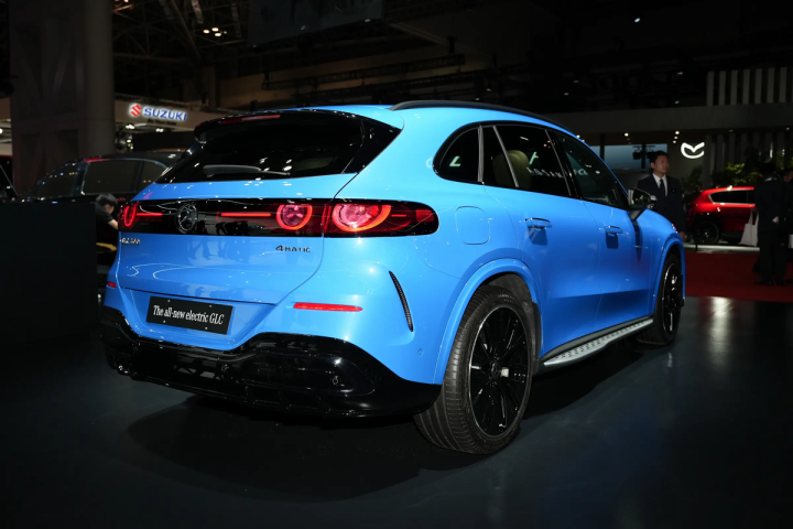 从侧后方看,这台新车虽然换了平台、变成了纯电,但它看上去还是很“GLC级”的。整个车身上既有锋利的线条,也有圆润的边框处置,这跟GLC级确实很接近。不过,GLC EV有更大的掀背角度,看上去更运动化,而车窗结构也能形成更强烈的俯冲感。